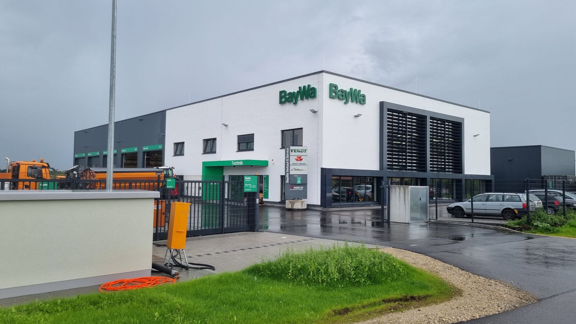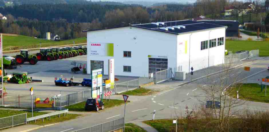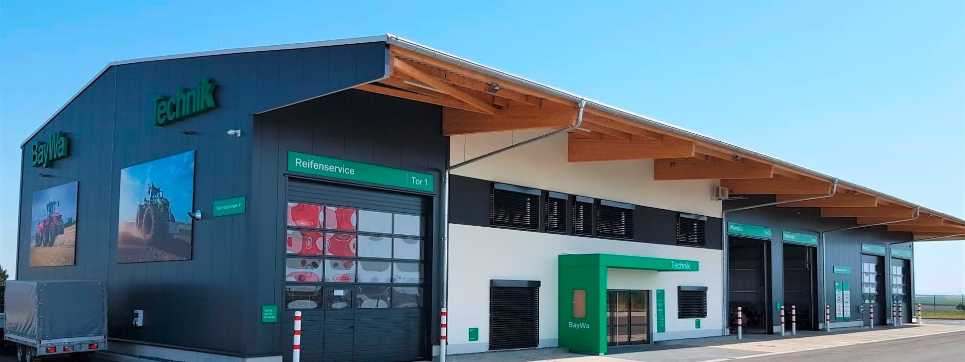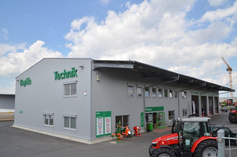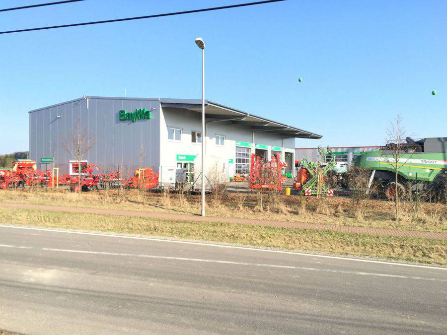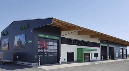 Neubau Gebrauchtmaschinenzentrum bestehend aus 2-geschossigen Bürogebäude mit Ausstellungshalle und Seminarraum, Landtechnik-Werkstatt, Waschhalle und zwei Unterstellhallen; Fertigstellung 2015.