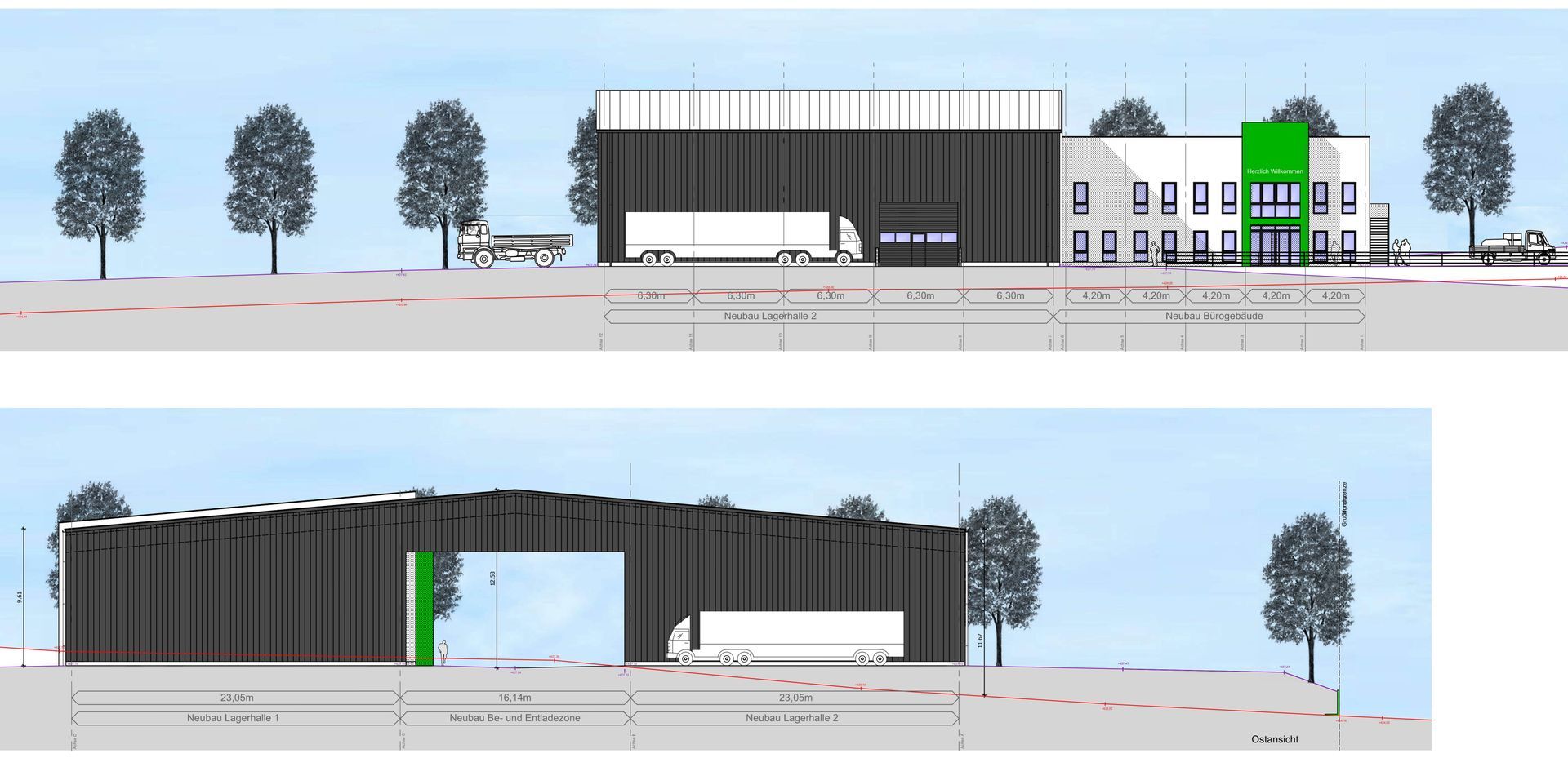 Neubau Bürogebäude mit LKW- Garage - Entwurf